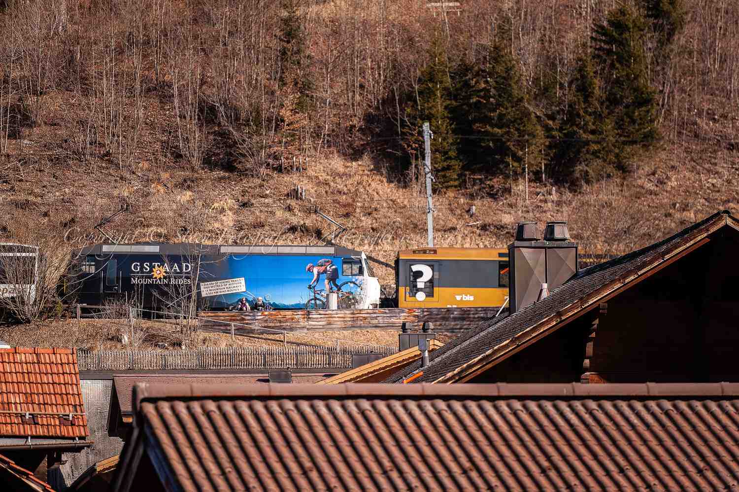 De loc met de reclame voor Gstaad is hier tweemaal omdat de ene neus zwart is en de andere neus wit.
